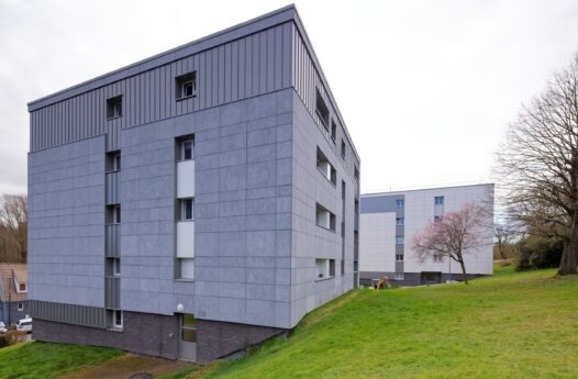 Les façades de la résidence Romain Rolland ont bénéficié d’un nouveau bardage moderne, transformant son aspect extérieur. Ce changement esthétique accompagne une rénovation intérieure tout aussi importante.